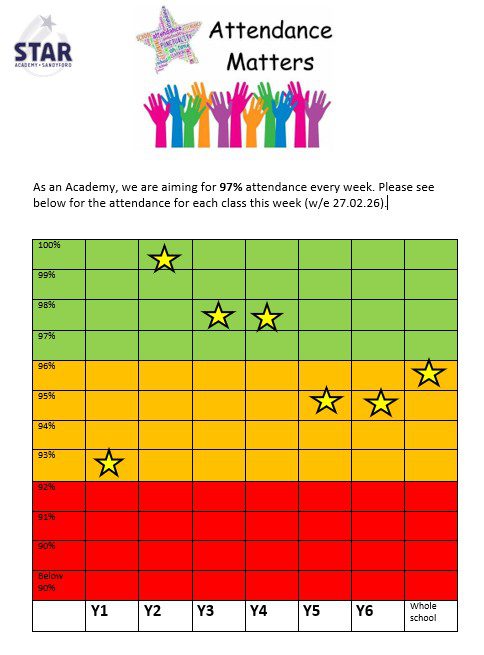 At Star Academy, our attendance target is 97% as a minimum for every child.