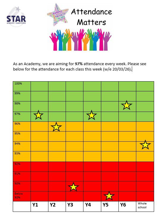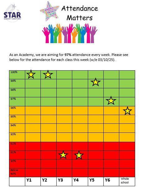 At Star Academy, our attendance target is 97% as a minimum for every child.